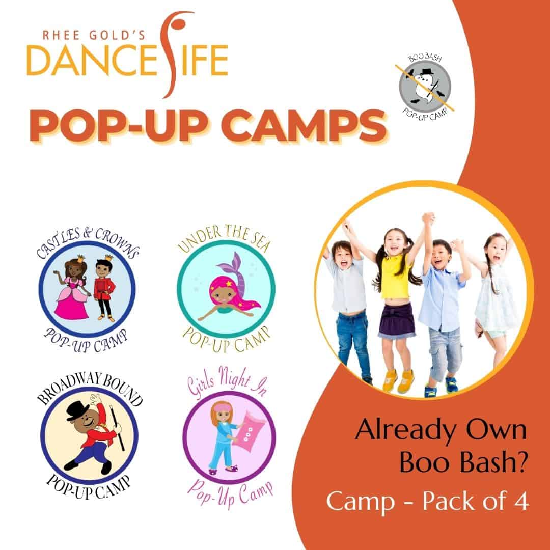 Already own Boo Bash camp? Enjoy the rest of these professionally designed, customizable pop-up camp packages. Designed by Jenny O’Brien with Rhee Gold’s DanceLife, these are a fun, creative ways to generate income and bring in new students to your studio! Each includes a complete, ready-made camp planner and enough content to expand from 2-3 hours to 2-3 days.